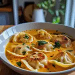 Coconut Curry Dumpling Soup is a delightful fusion of flavors that brings warmth and comfort to any meal. This vibrant soup features tender dumplings swimming in a creamy coconut milk broth, infused with aromatic spices and colorful vegetables. Perfect for rainy days or cozy evenings with friends, this dish is sure to impress with its rich taste and inviting presentation. Enjoy a bowl of this nourishing soup that not only warms the body but also lifts the spirit!
