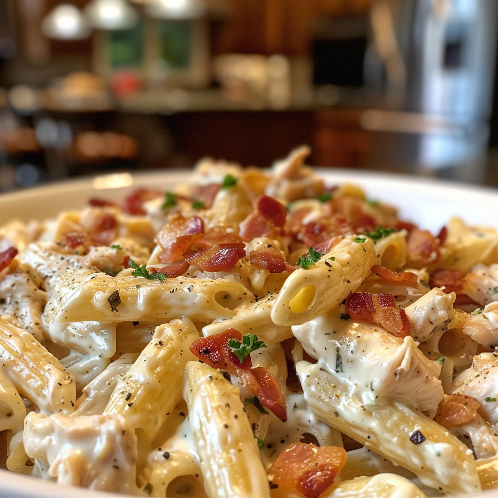 - This creamy chicken bacon ranch pasta is a crowd-pleaser, perfect for busy weeknights