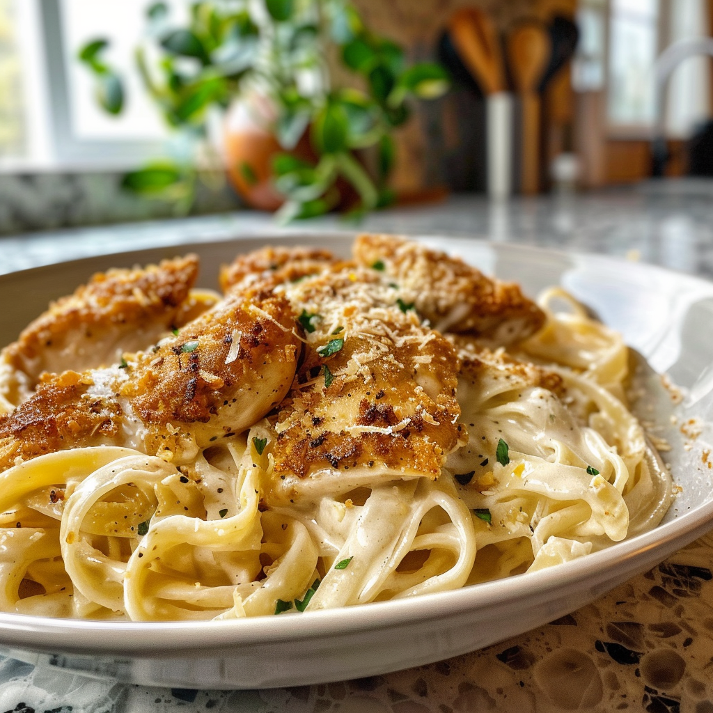 - When making Crispy Chicken Fettuccine Alfredo, ensure your chicken is evenly coated for that perfect crunch