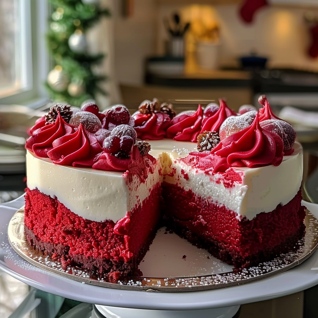 - The Christmas red velvet cheesecake combines classic flavors with a festive twist