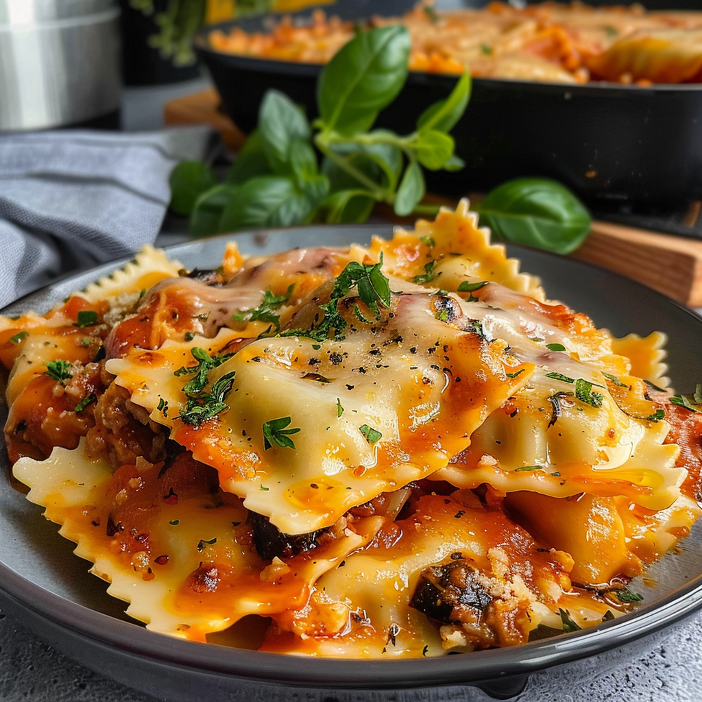 With its gooey cheese and savory sauce coating every ravioli piece, you won’t be able to resist diving right in!