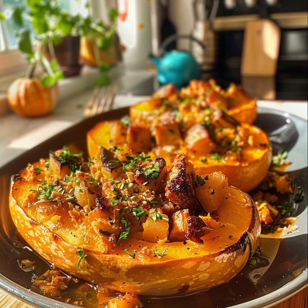 Honey-Roasted Butternut Squash Stuffed with Chicken