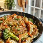 Potsticker stir fry is a delightful fusion of crispy potstickers and vibrant vegetables, all sautéed to perfection. This quick and easy dish is bursting with flavor from savory soy sauce and aromatic garlic, making it an ideal choice for weeknight dinners or weekend gatherings. With its colorful presentation and satisfying crunch, this stir fry not only pleases the palate but also impresses your guests. Enjoy a memorable culinary experience that turns simple ingredients into a feast!