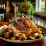 Stuffed roast chicken with cranberries and apples is a delightful centerpiece for any gathering. This recipe combines tender, juicy chicken with a sweet and savory stuffing that elevates your dining experience. The aromatic blend of fresh herbs, tart cranberries, and sweet apples creates a dish that’s sure to impress family and friends alike.