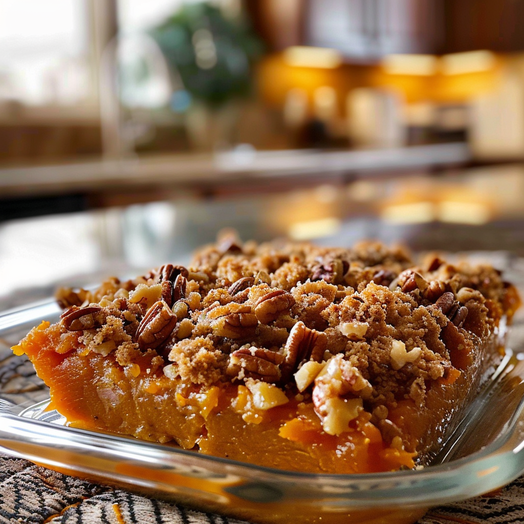 Every spoonful evokes memories of family holidays where laughter filled the room, and this casserole made its grand entrance. You can almost hear the clinking of forks and joyful conversations as people savor the creamy sweetness topped with crunchy pecans, making it an ideal choice for any festive occasion.