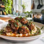 Mashed potatoes, rice, or steamed vegetables complement these meatballs beautifully.