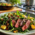 Arugula Skirt Steak Salad with Crispy Potatoes is a vibrant and flavorful dish that elevates any meal. Tender, juicy skirt steak, seared to perfection, rests atop a bed of peppery arugula, accompanied by crispy baby potatoes. This salad is not just delicious; it’s a celebration of flavors that makes for an impressive centerpiece at gatherings or a comforting weeknight dinner. Quick to prepare and customizable with seasonal ingredients, this dish promises satisfaction in every bite.