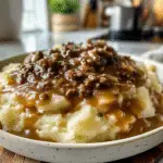 Indulge in the ultimate comfort food with our Hamburger Gravy over Mashed Potatoes. This hearty dish features seasoned ground beef simmered in a rich, savory gravy, generously poured over creamy, buttery mashed potatoes. Perfect for cozy evenings or family gatherings, this meal promises to satisfy both your hunger and your heart.