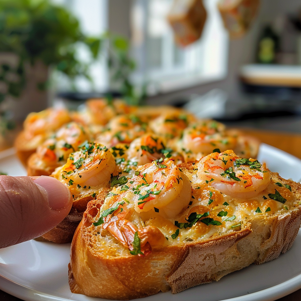 baked appetizers / comfort food / crispy bread / easy seafood / garlic toast / herb toppings / shrimp recipe